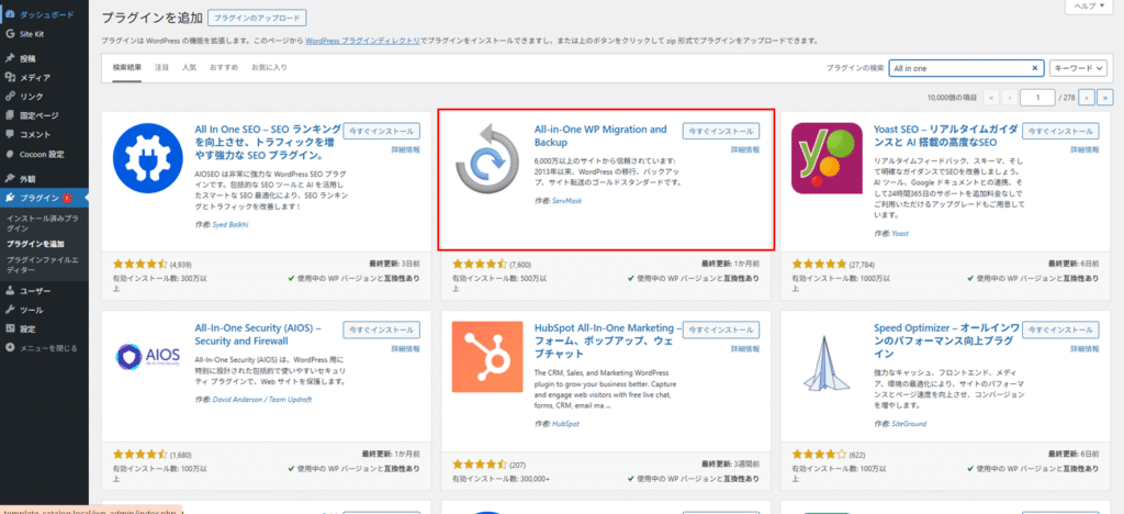 1. local WordPress に「All-in-One WP Migration」をインストールする