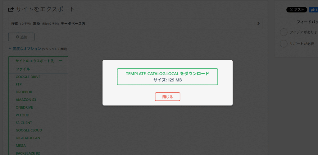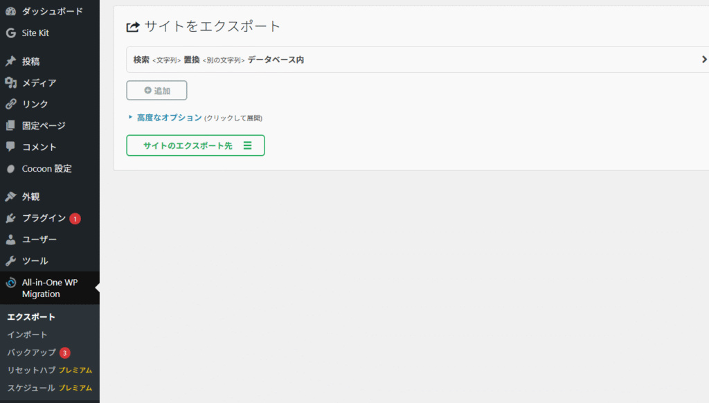 サイトのエクスポート先を押下する