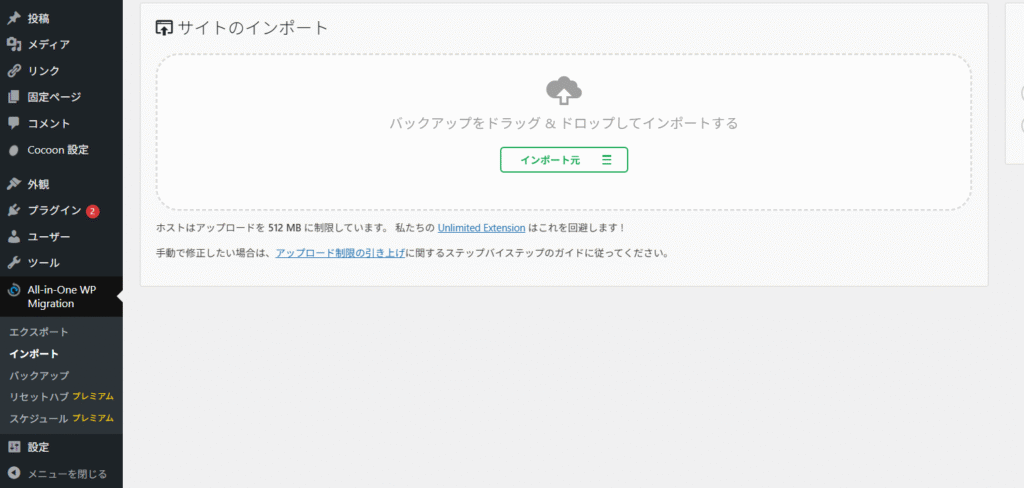 CORESERVERのWordPress に「All-in-One WP Migration」をインストールする
