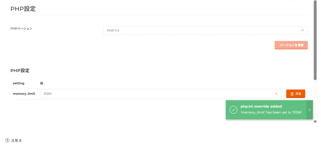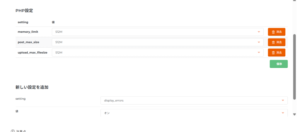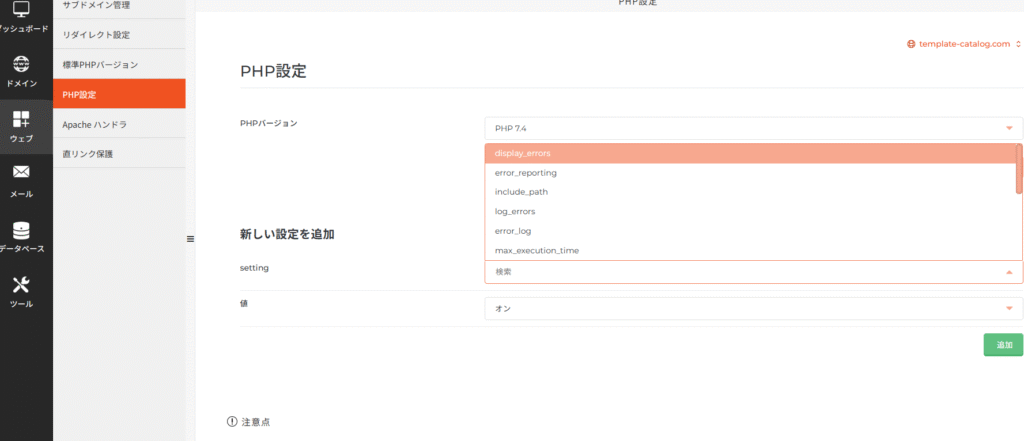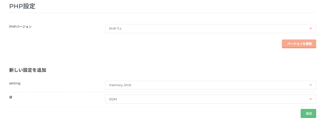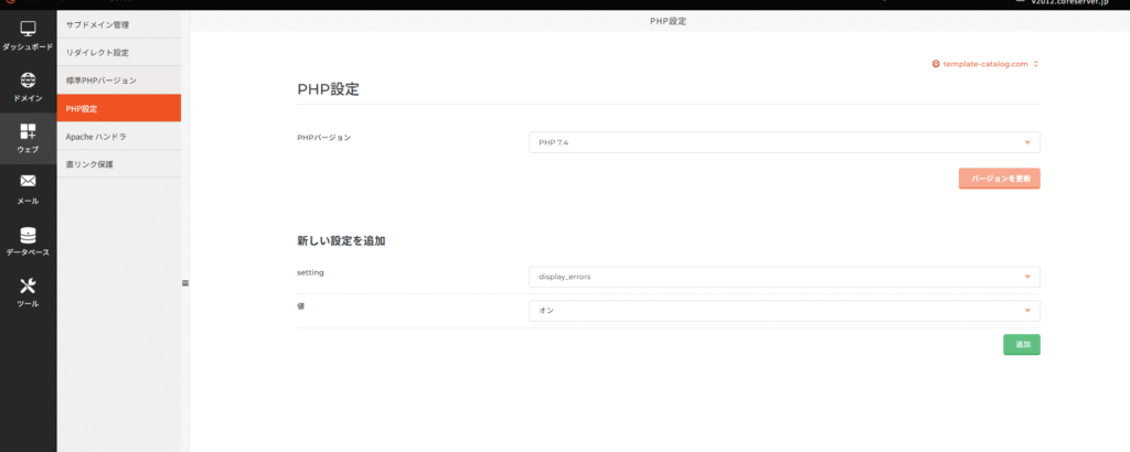 CORESERVERダッシュボードのウェブーPHP設定から順番に追加する