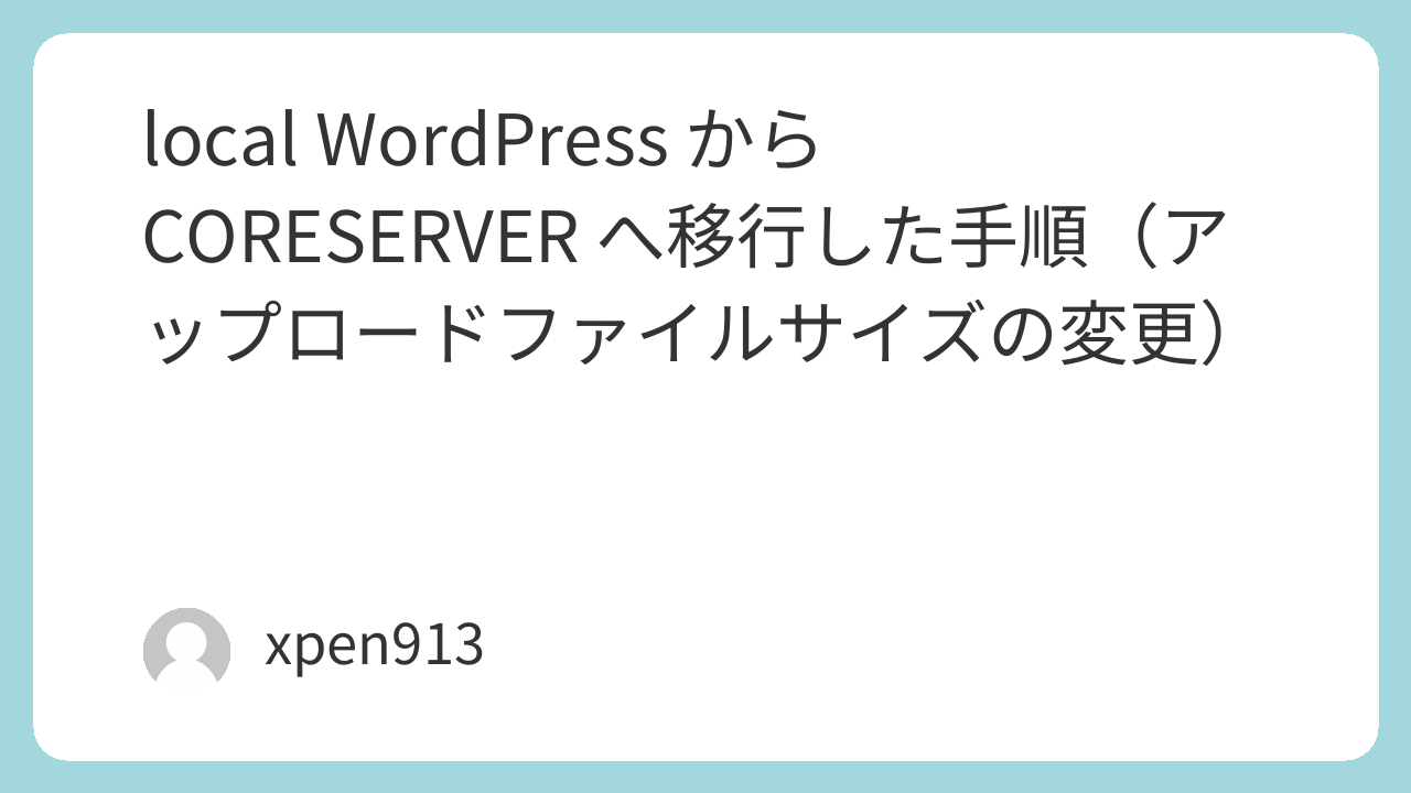 local WordPress から CORESERVER へ移行した手順(アップロードファイルサイズの変更)
