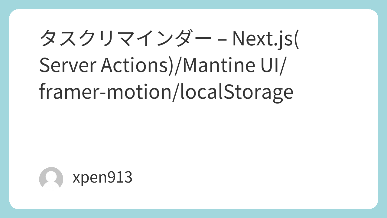 - Backend: Next.js Server Actions、localStorage